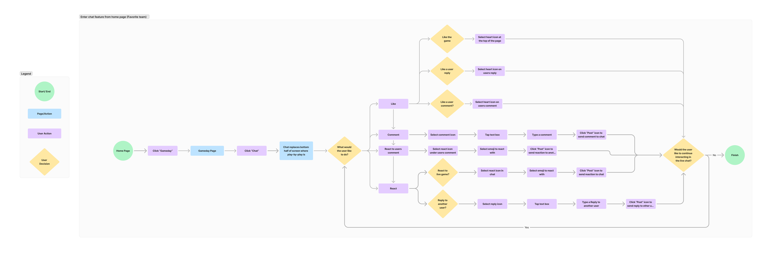 A user flow was then created to visually represent the steps a user will take to accomplish a specific task