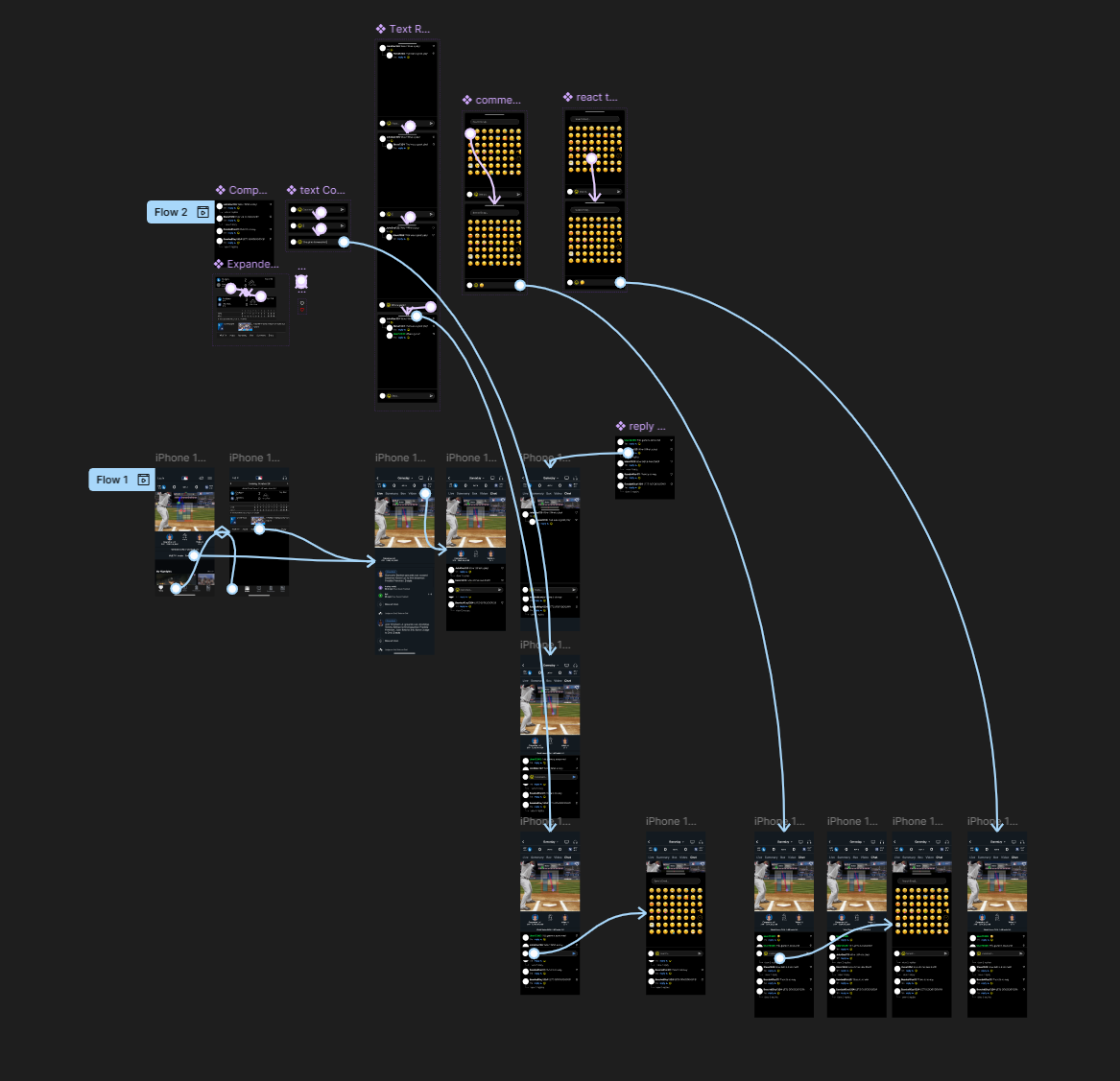 I would like to explore ways that users can like each other's reactions as well as comment on each other's reactions while watching a live MLB game.